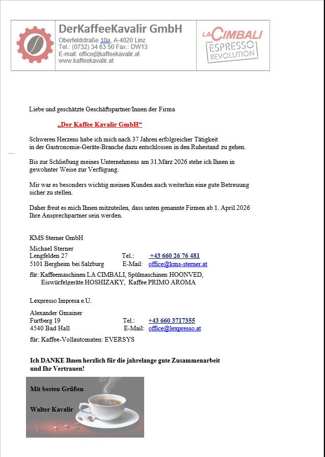 Im Mittelpunkt unserer Tätigkeiten steht der Service von Kaffeevollautomaten und Espressomaschinen. Wir führen den Service nach höchsten Qualitätskriterien durch und achten dabei auf eine möglichst rasche Reparatur, damit Sie schnell wieder zu Ihrem Kaffee kommen. Unser Unternehmen ist neuer autorisierter Kundendienst für alle La Cimbali Kaffee- und Gastronomiemaschinen.